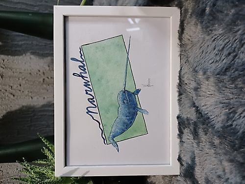 Originele aquarel gemaakt in 2020 van een narwhal.
