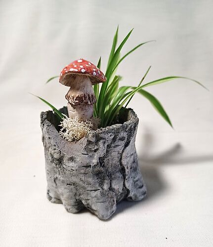 Beautiful handmade and therefore unique flower pot plug in the shape of a mushroom.