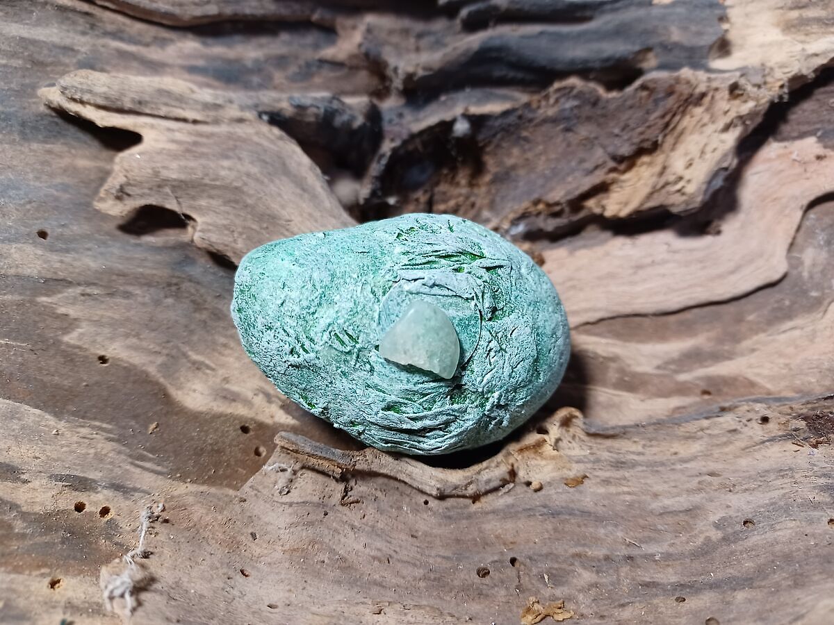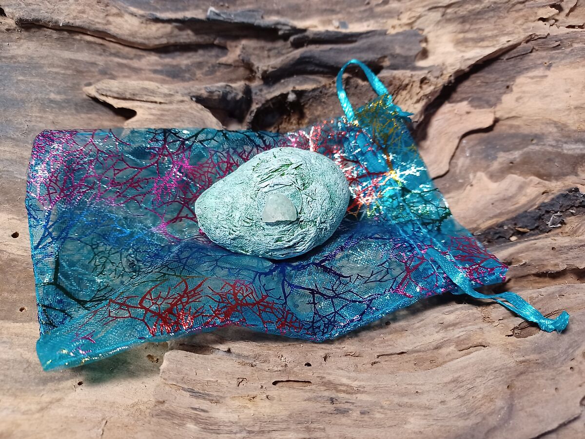 Mooie handgemaakte steen met een maansteen in zachte groentinten.